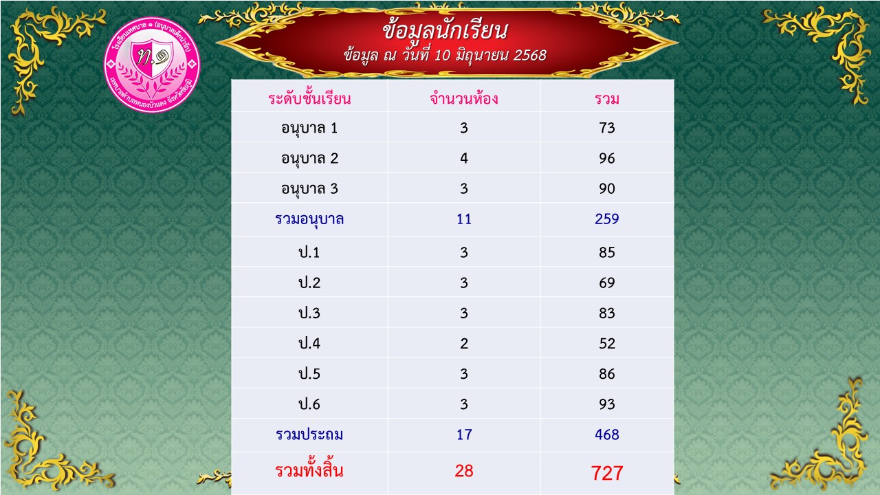 ข้อมูลนักเรียน ปีการศึกษา 2568